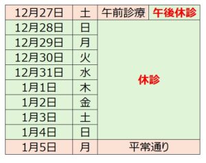 年末年始休診のお知らせ